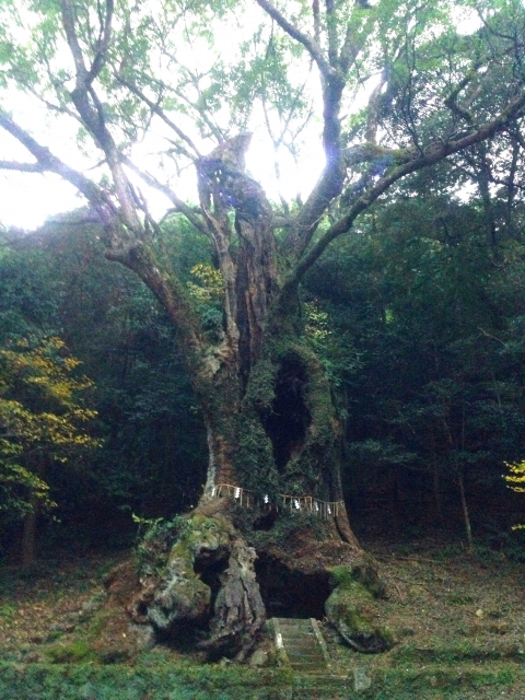樹齢3000年を超えるといわれる巨大なクスノキが鎮座する神社で、圧倒的な存在感と神秘的な空気感が作品の雰囲気にぴったり。
