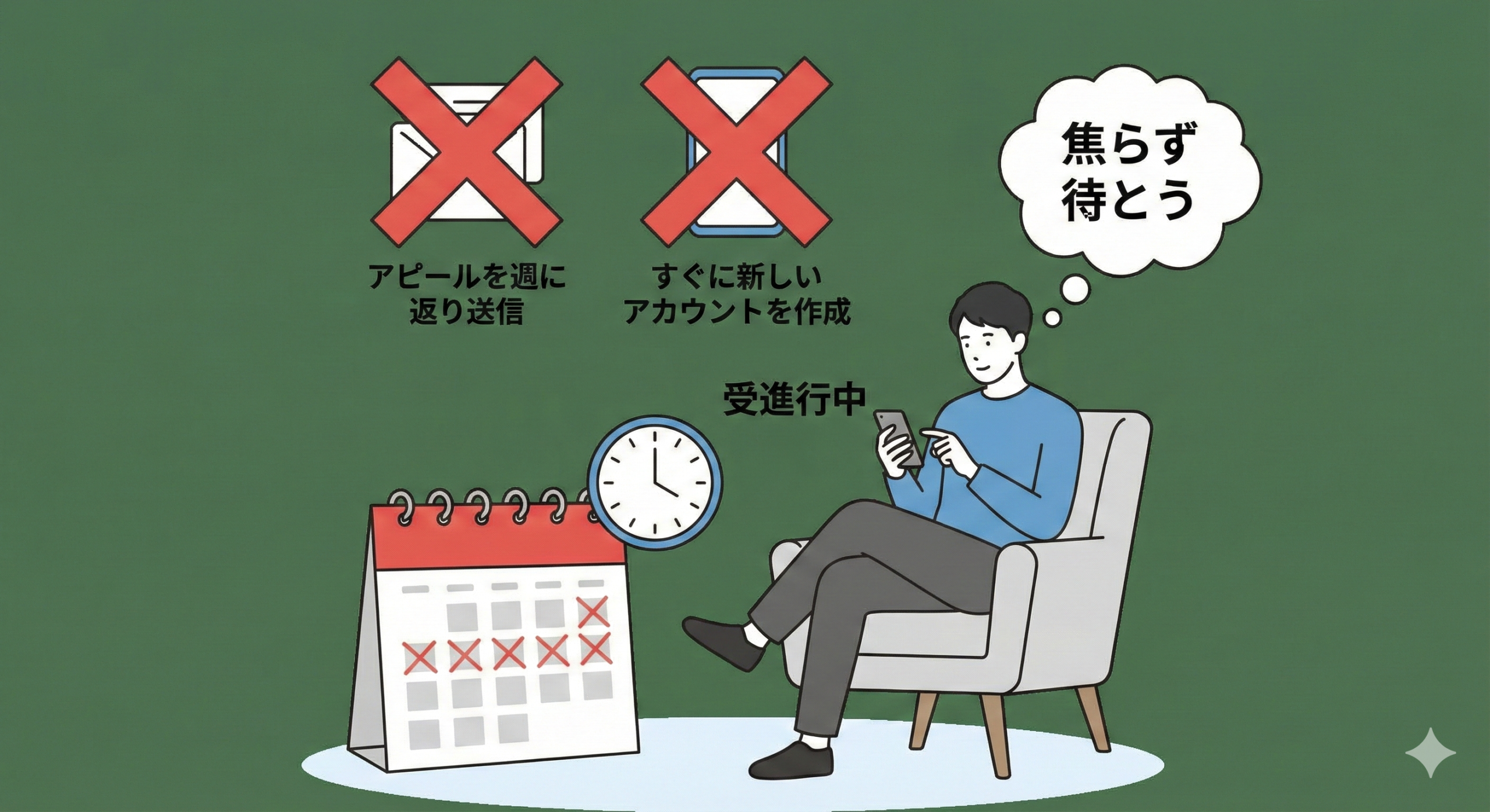 審査を待っている間に、焦って以下の行動をとると逆効果になります。
